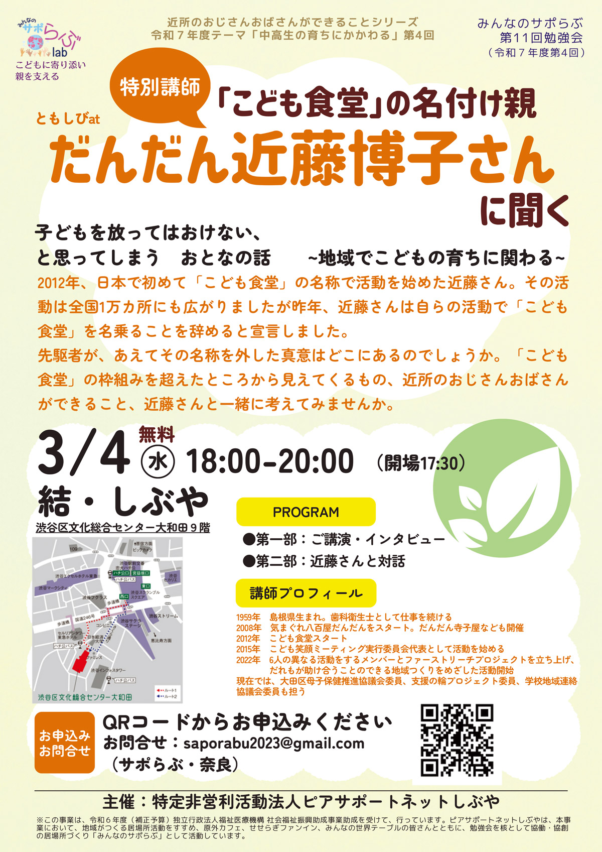 「子ども食堂」という名称とともに、食事を提供する活動を始めた近藤博子さんに登壇していただけることになりました。